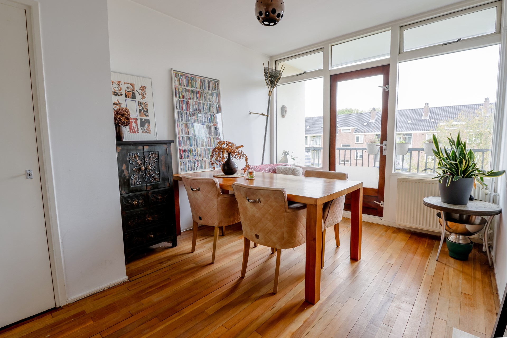De badkamer grenst direct aan dit balkon, waardoor er extra licht binnenvalt en er een prettige verbinding ontstaat met de slaapkamer. De tweede kamer wordt momenteel gebruikt als eetkamer, maar leent zich ook uitstekend als extra slaapkamer, thuiskantoor of creatieve hobbyruimte.